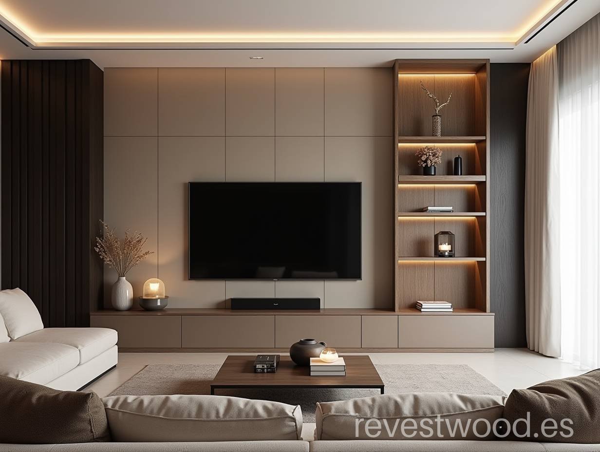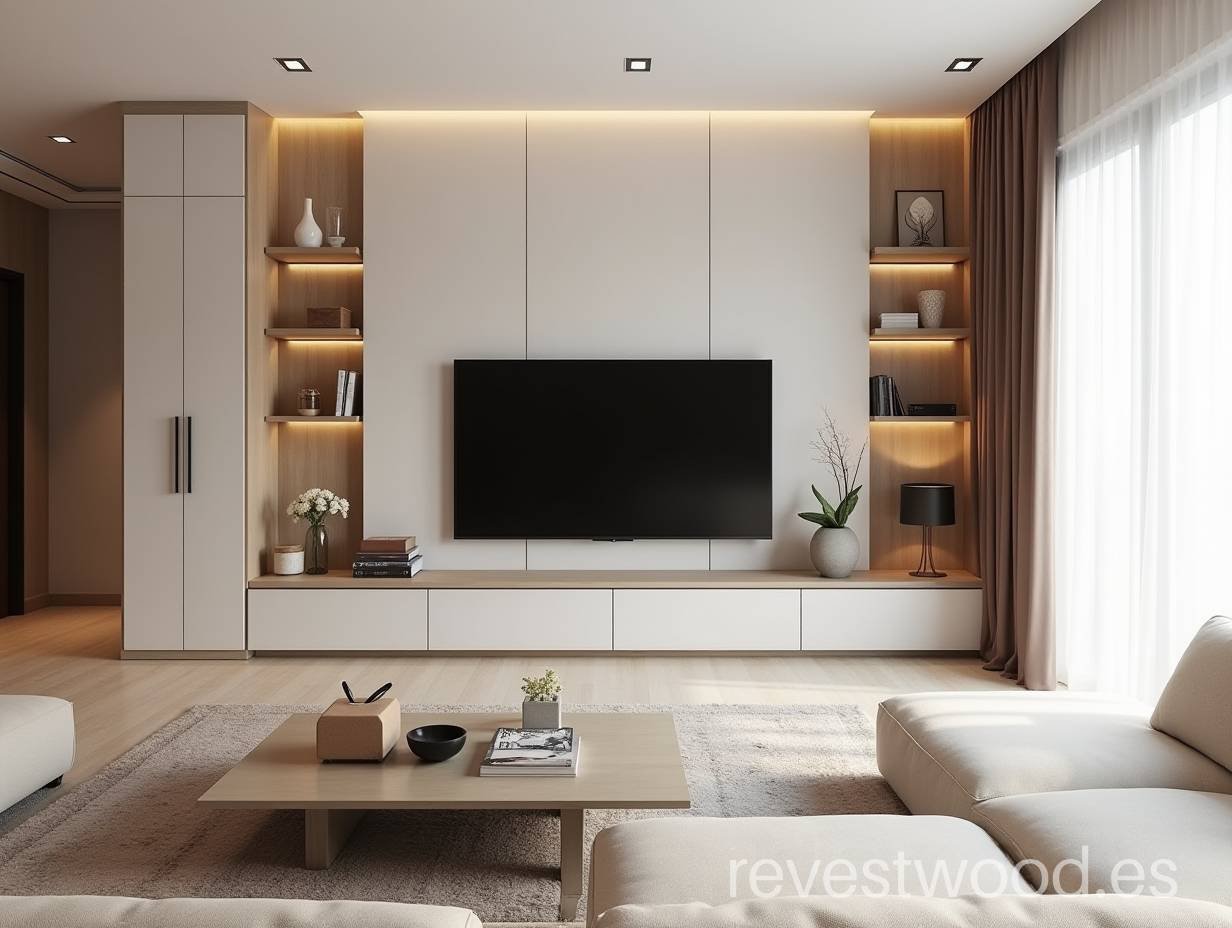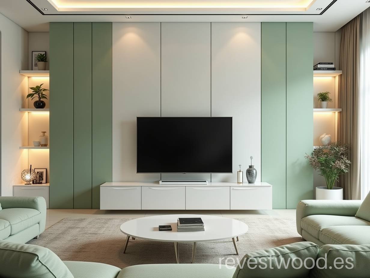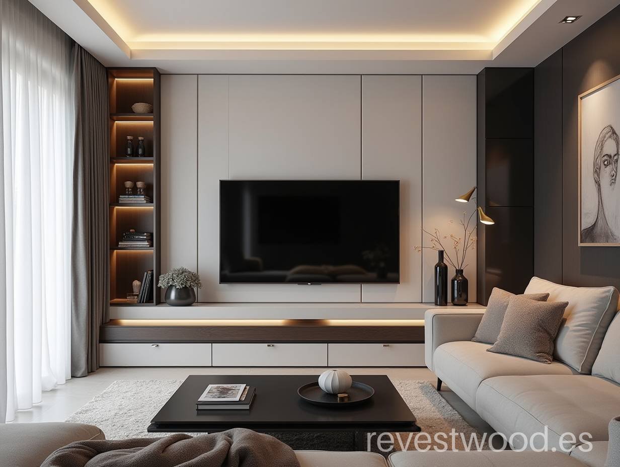 Un diseño innovador con pared de TV y revestimientos sofisticados que transforman tu sala en un espacio elegante, moderno, funcional y acogedor.