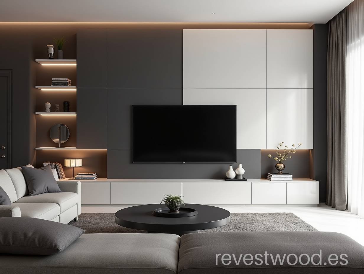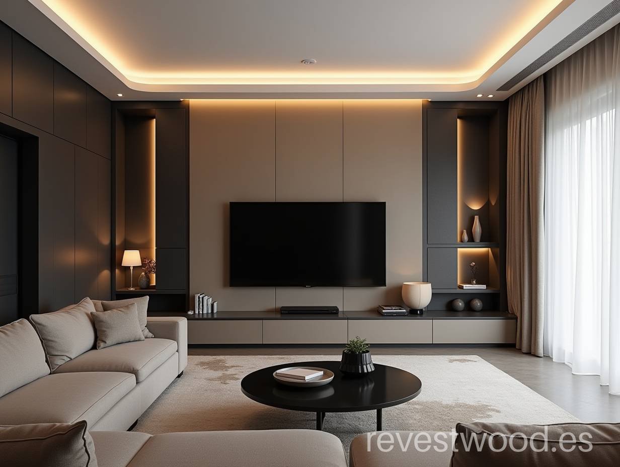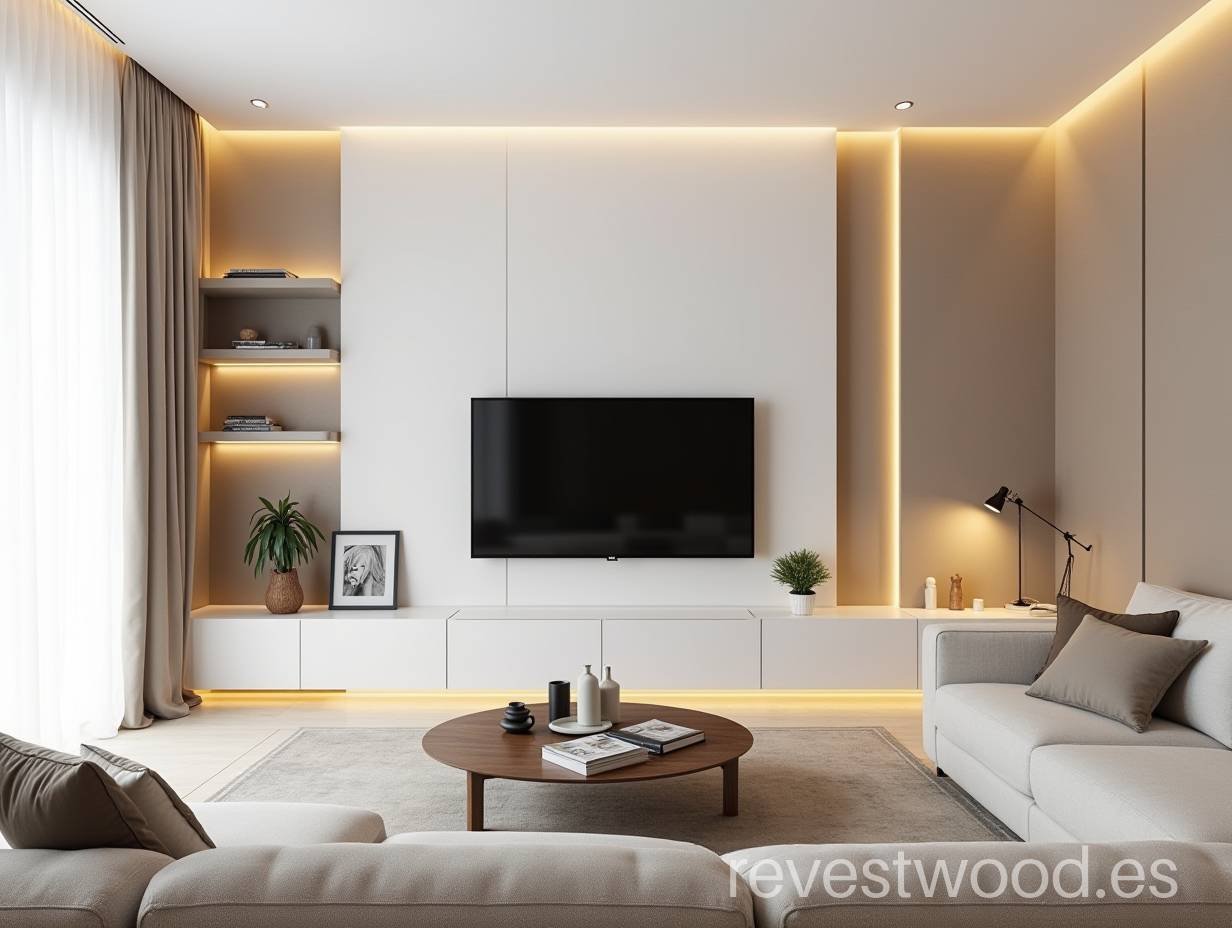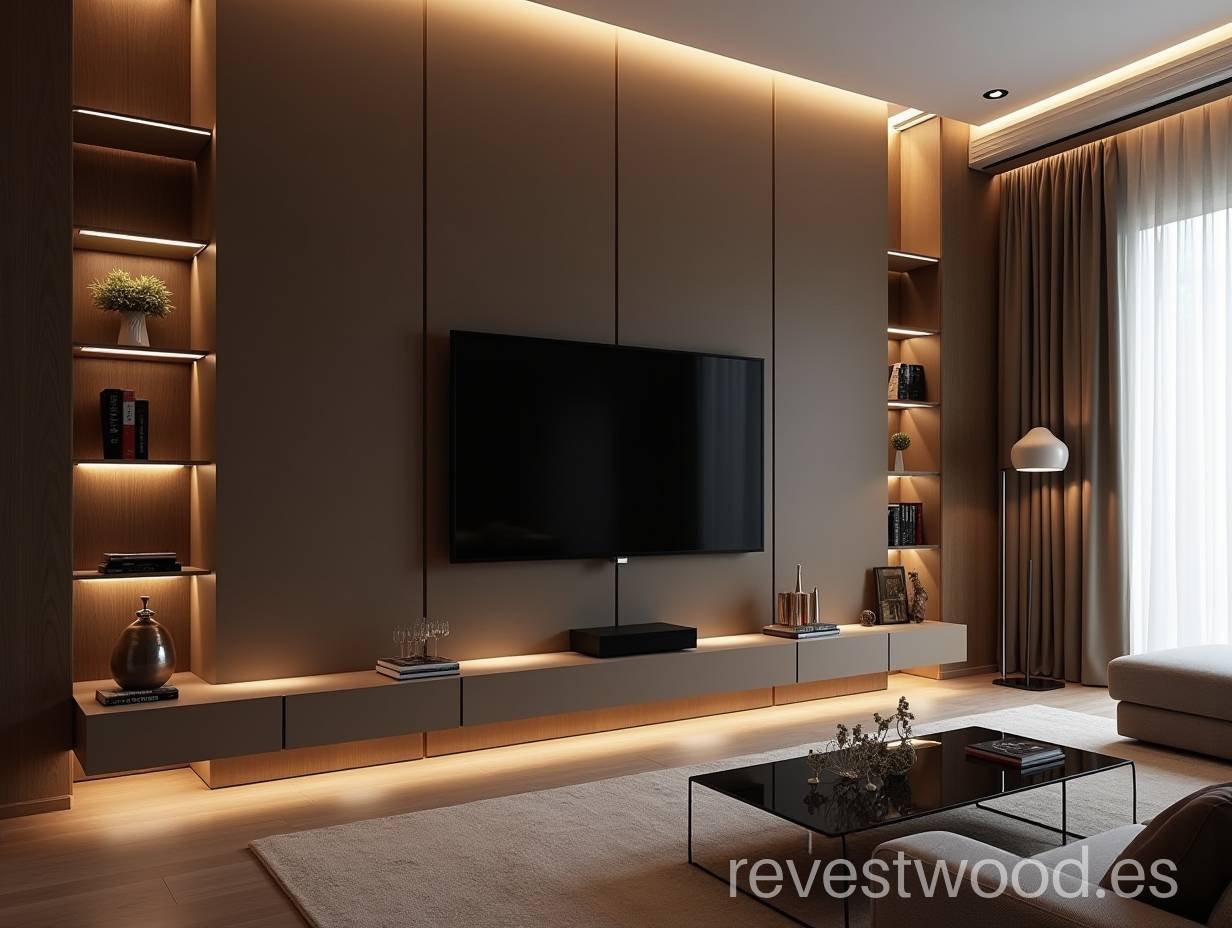 Un diseño innovador con pared de TV y revestimientos sofisticados que transforman tu sala en un espacio elegante, moderno, funcional y acogedor.