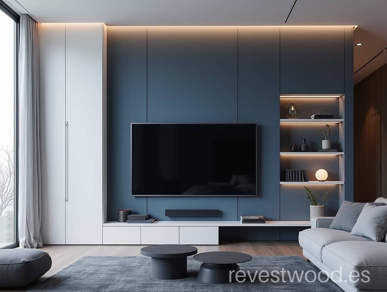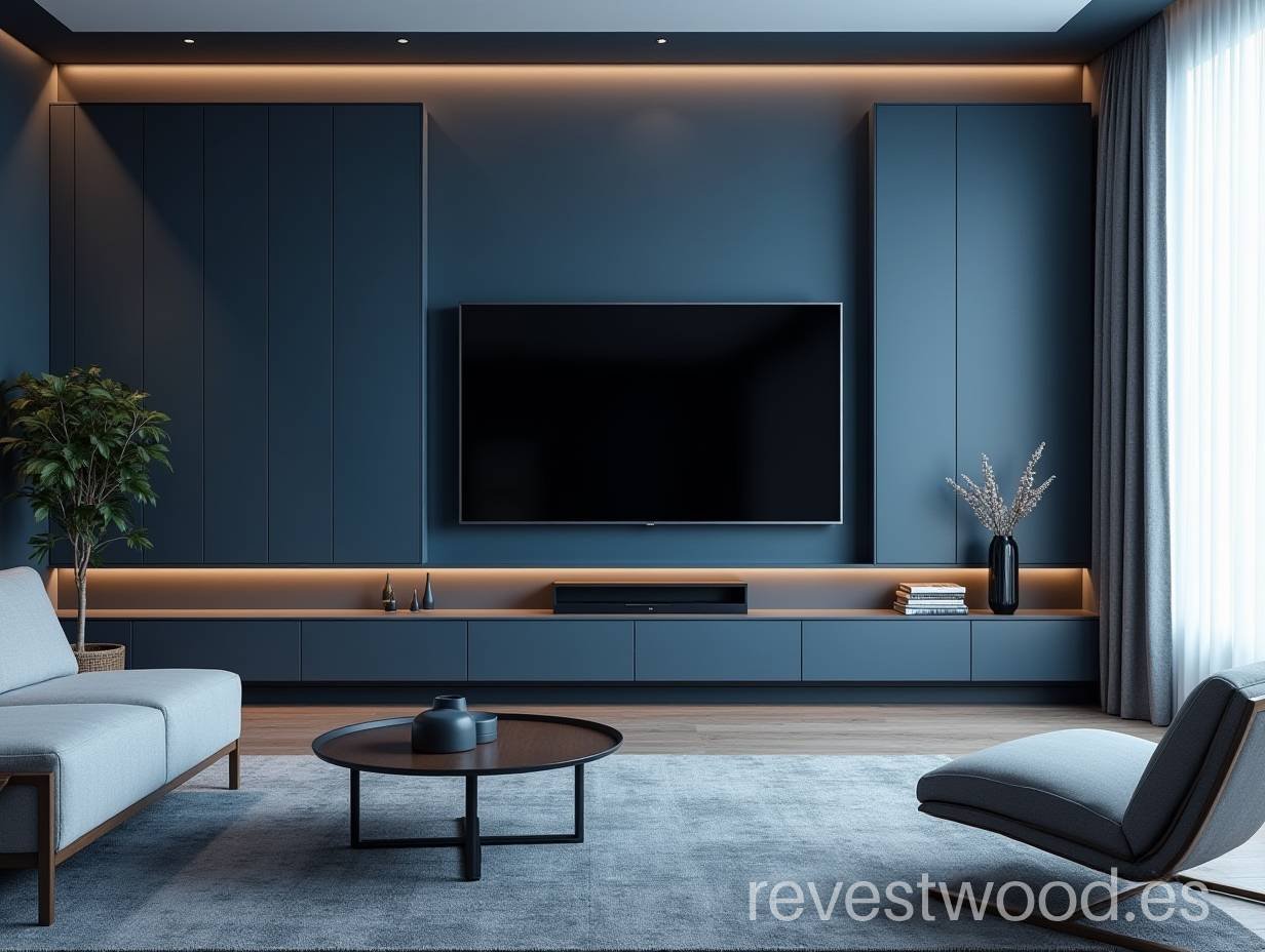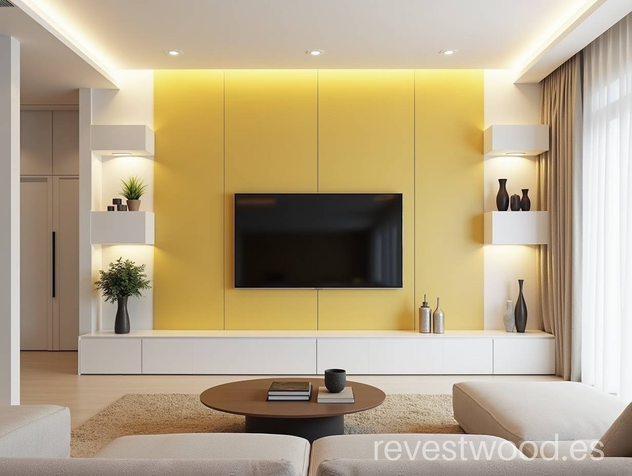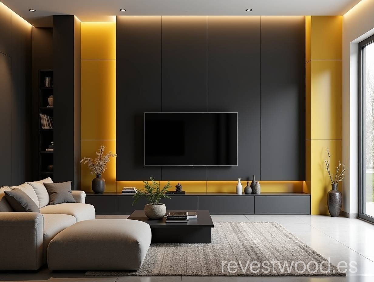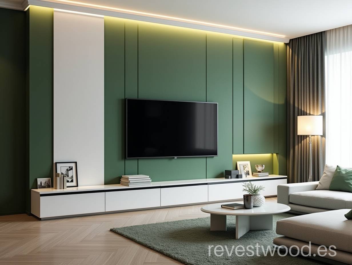 Un diseño innovador con pared de TV y revestimientos sofisticados que transforman tu sala en un espacio elegante, moderno, funcional y acogedor.