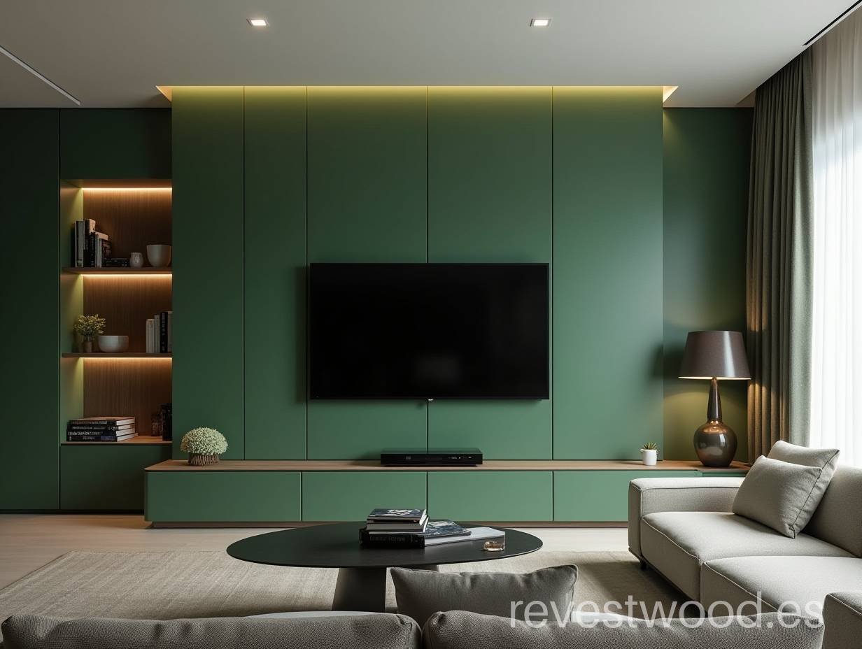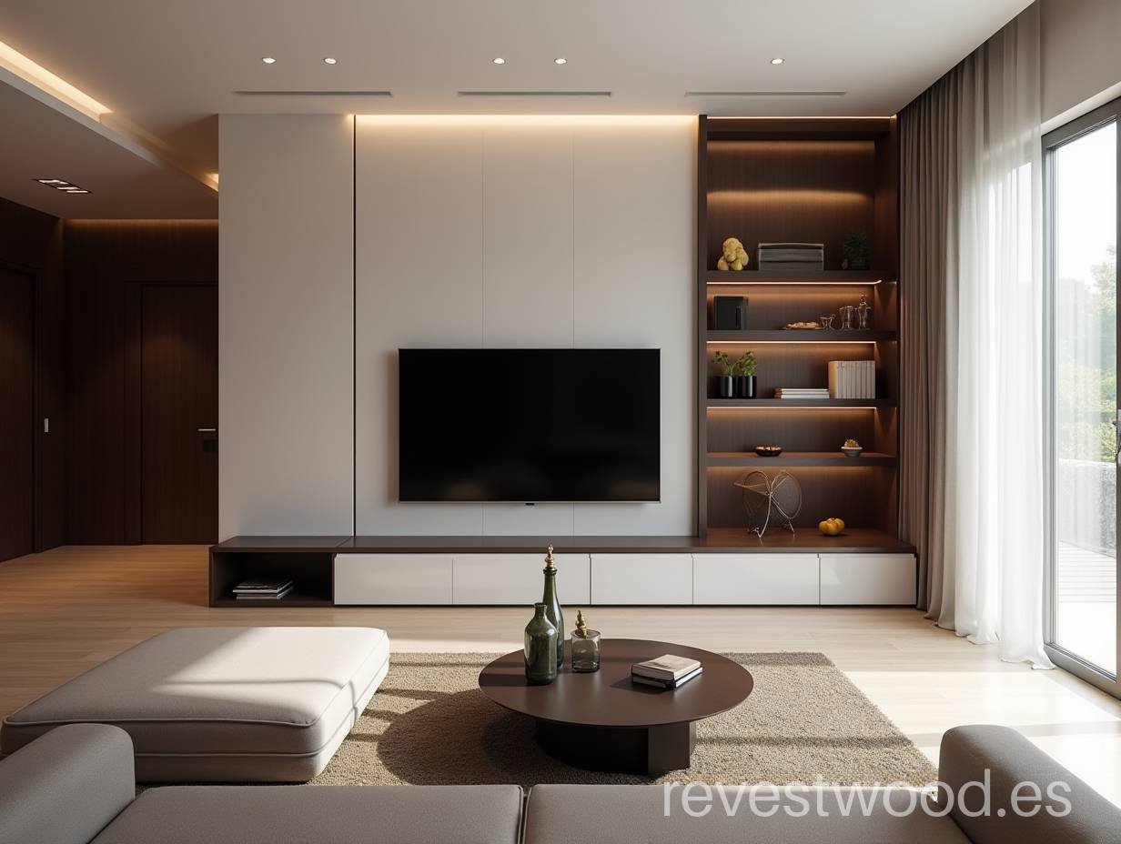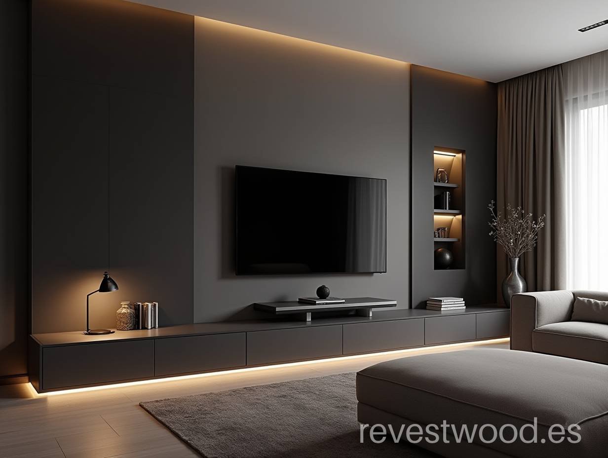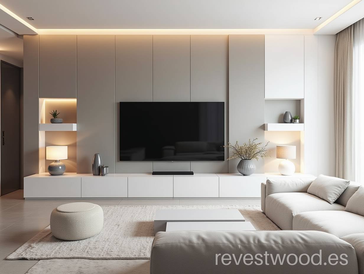 Un diseño innovador con pared de TV y revestimientos sofisticados que transforman tu sala en un espacio elegante, moderno, funcional y acogedor.