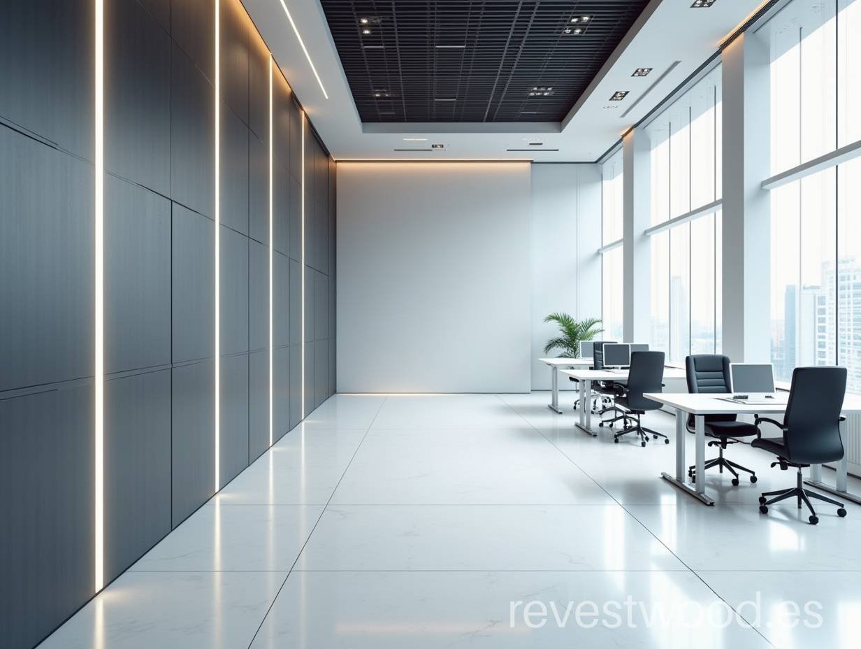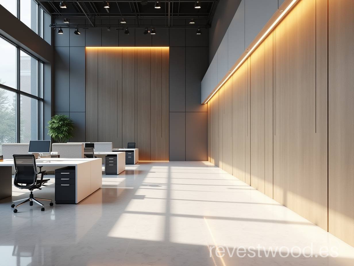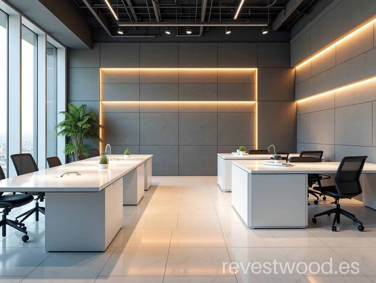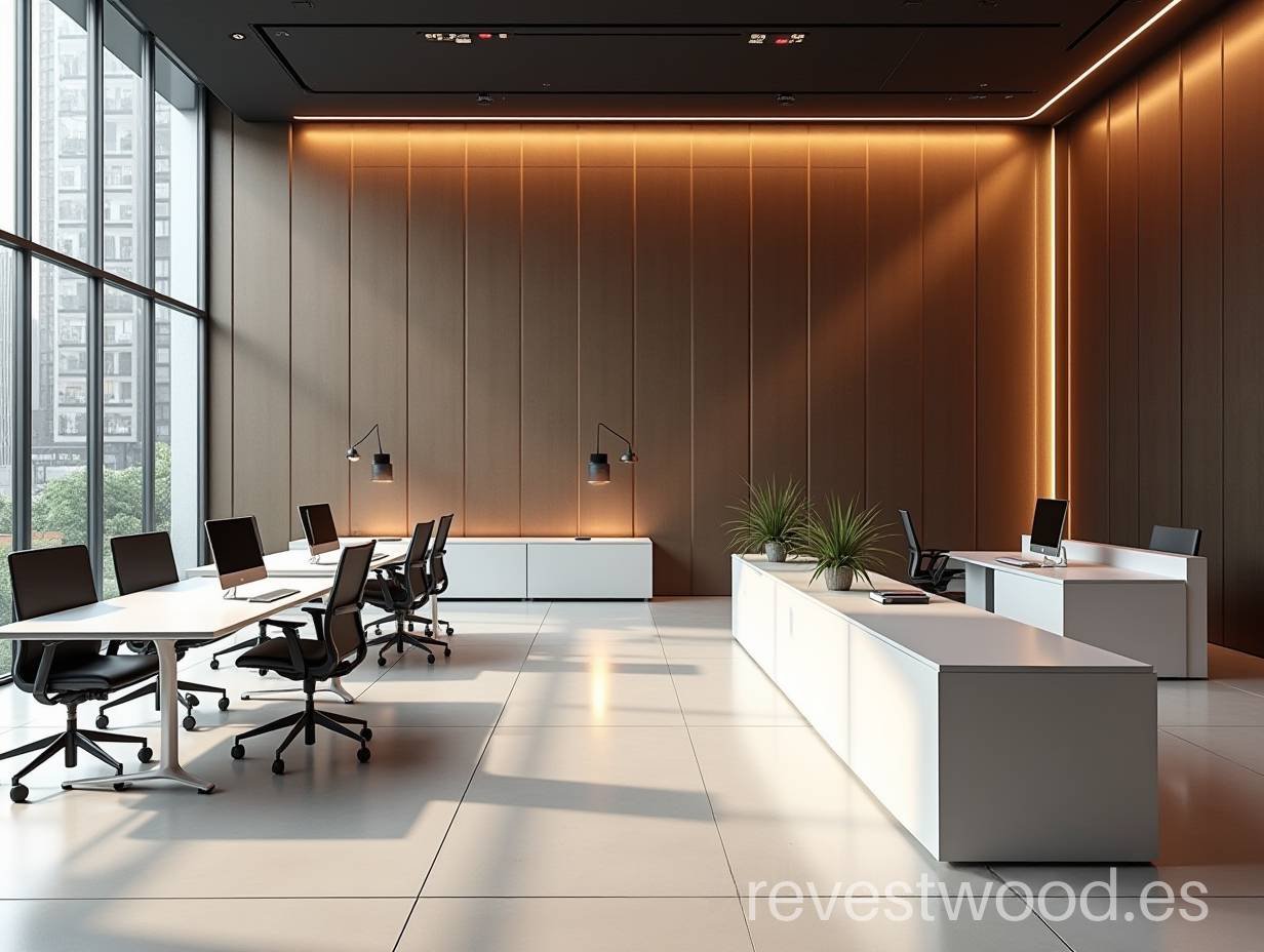 Revestimientos que dejan tu oficina moderna y acogedora, creando un ambiente elegante y productivo, ideal para inspirar creatividad y confort.