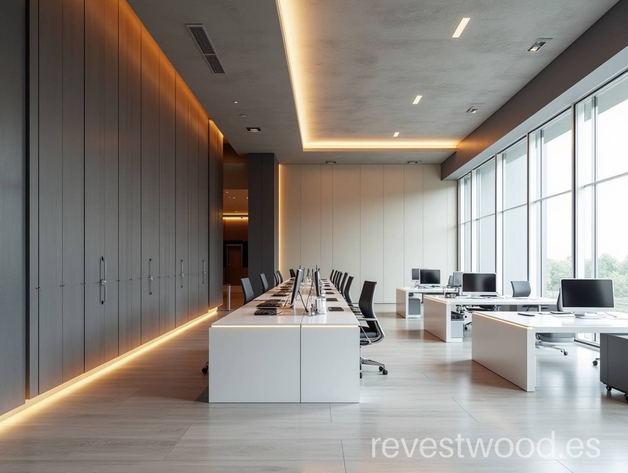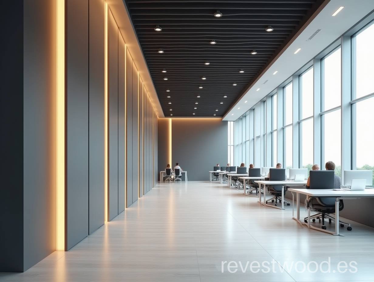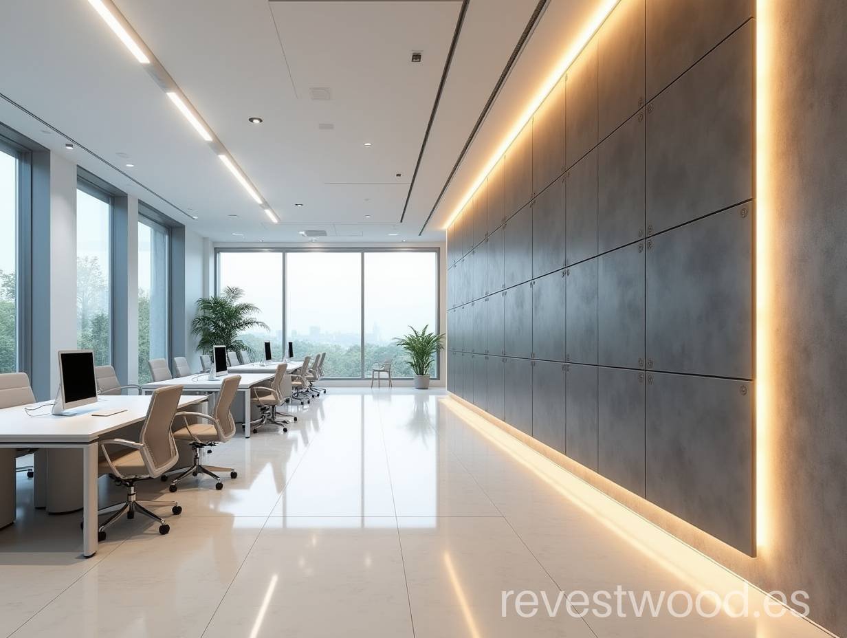 Revestimientos que dejan tu oficina moderna y acogedora, creando un ambiente elegante y productivo, ideal para inspirar creatividad y confort.