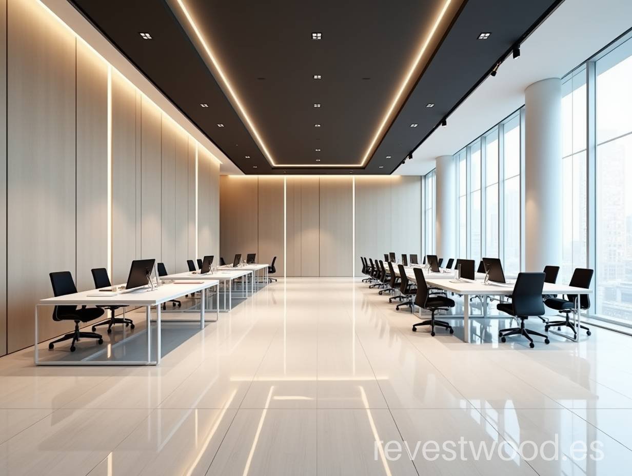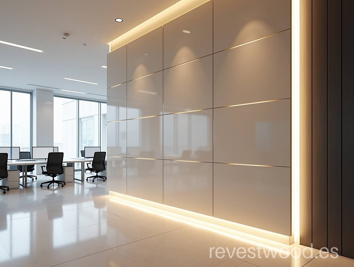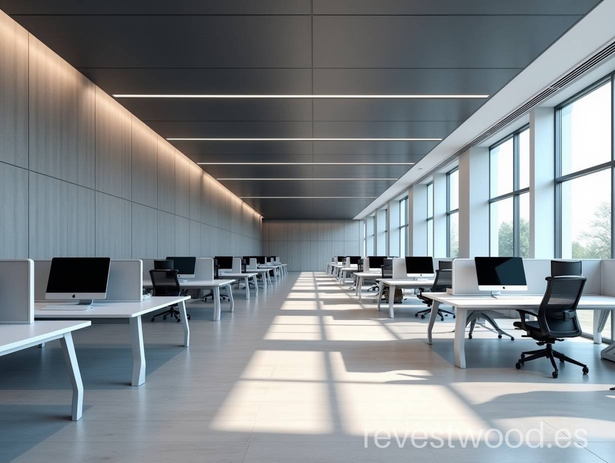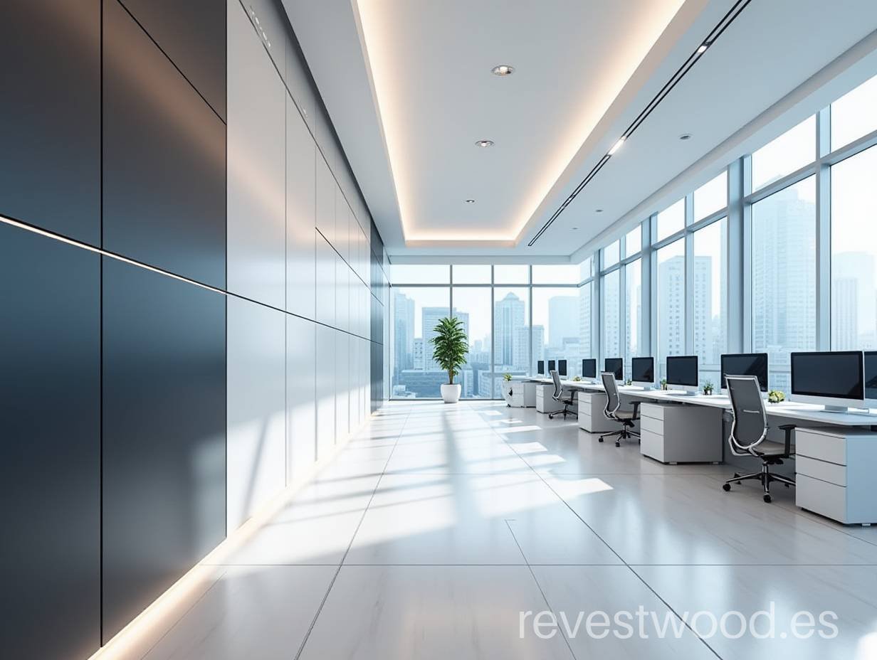 Revestimientos que dejan tu oficina moderna y acogedora, creando un ambiente elegante y productivo, ideal para inspirar creatividad y confort.